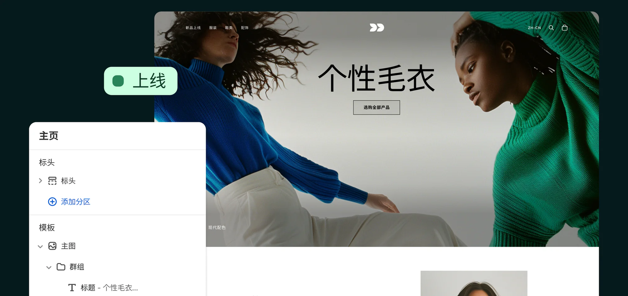 打造引人注目的商店,创造绝佳销售条件。 快速设计,选择时尚模板,或者全面定制,全权掌控。